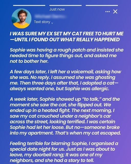 She showed up at my door, saw the cat, and exploded. Called me selfish. Said I clearly hadn’t cared about her feelings at all. We fought. Loudly. Then she left. That night, my cat went missing.